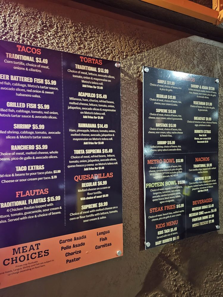 Metro Taquero is a Latinx-owned restaurant in Hayward, CA, offering a wide range of options including vegetarian dishes and seafood tacos. With easy parking, cheerful staff, and a clean ambiance, this spot has become a favorite for many. Customers rave about the $2 Taco Tuesdays and seafood Taco Sundays, with options like grilled chicken, carnitas, and fish tacos that are packed with flavor. The traditional style Carne Asada Tacos are a standout, despite being slightly dry, they are loved for their taste when paired with green salsa, lime, and pickled veggies. The fish tacos are a must-try, with grilled fish, tartar sauce, tomatoes, and avocados in a crispy shell. Metro Taquero is not just a restaurant; it's an experience worth savoring.